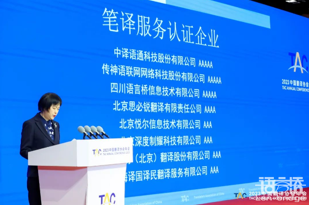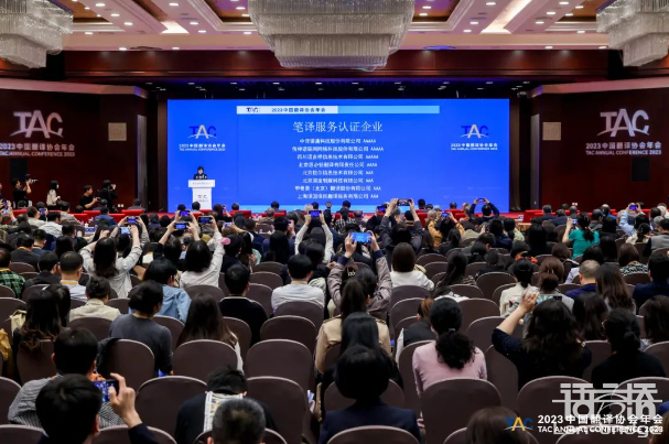 2023年4月3日,由中國外文局指導(dǎo),中國翻譯協(xié)會主辦“2023中國翻譯協(xié)會年會”在北京國際會議中心開幕。會議期間發(fā)布了《2023中國翻譯及語言服務(wù)行業(yè)發(fā)展報告》《2023全球翻譯及語言服務(wù)行業(yè)發(fā)展報告》,并進行了翻譯服務(wù)認證企業(yè)授牌暨《口譯服務(wù)認證要求》發(fā)布。