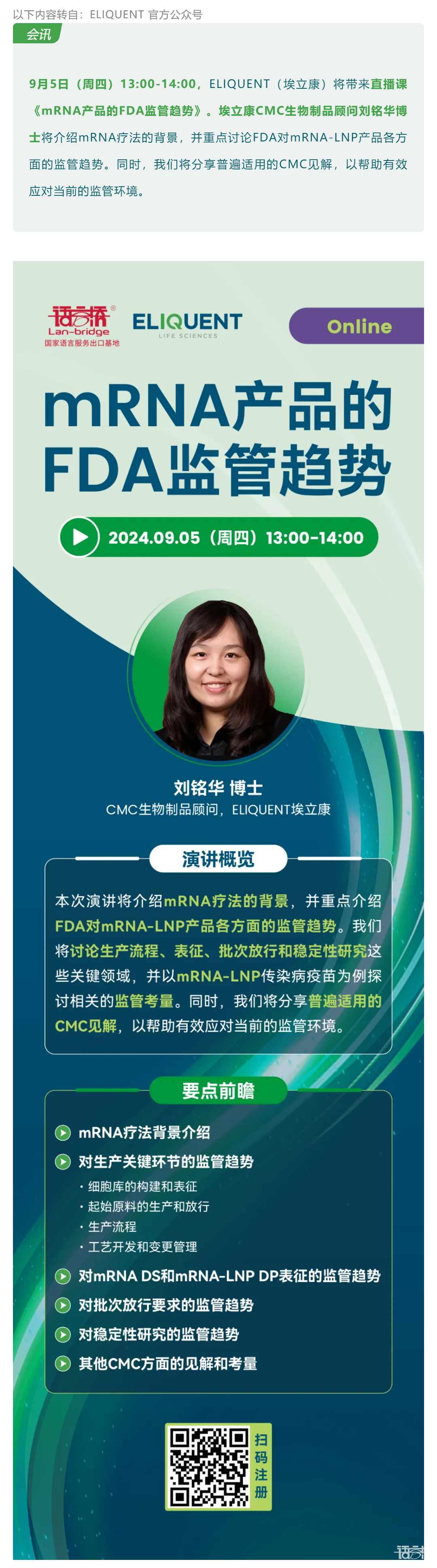 直播預告 | mRNA產品的FDA監(jiān)管趨勢