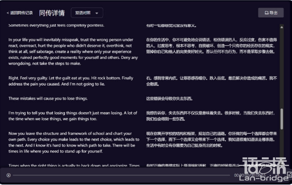 終于支持了分段展示,不用再被大段文字轟炸了!此外,已經(jīng)完成翻譯的歷史段落和正在同傳的最新一段也做了視覺(jué)區(qū)分,幫助我們更快定位。