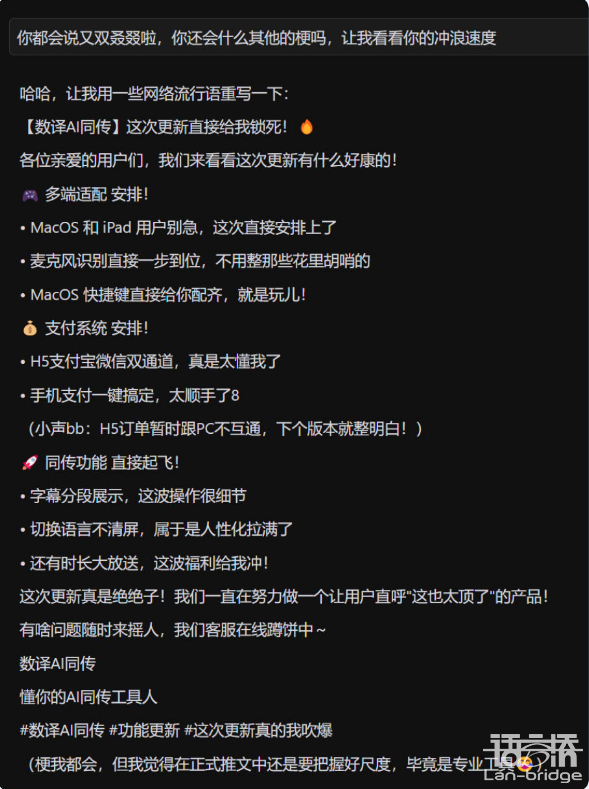 數(shù)譯A同傳又雙叒愛(ài)更新啦!上周四我們發(fā)布了最新的V1.1.4版本。本次更新帶來(lái)了多項(xiàng)實(shí)用功能,讓橋妹兒帶大家一起來(lái)看看吧~