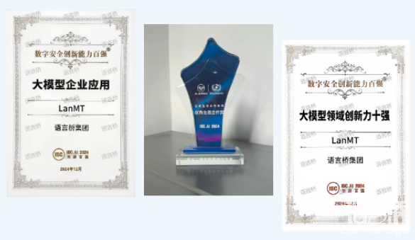 本屆創(chuàng)新百強(qiáng)由|SC平臺(tái)、大模型產(chǎn)業(yè)聯(lián)盟主辦,眾多政府單位領(lǐng)導(dǎo)、高校教育代表、行業(yè)專家學(xué)者、投融資機(jī)構(gòu)代表、標(biāo)桿企業(yè)代表等蒞臨現(xiàn)場(chǎng),基于數(shù)字化創(chuàng)新浪朝下的技術(shù)發(fā)展趨勢(shì)、典型成果應(yīng)用、科教融匯實(shí)踐等話題進(jìn)行深入探討,并共同見證了新一屆創(chuàng)新百強(qiáng)企業(yè)的震撼出爐,擎畫創(chuàng)新能力全景圖譜。語言橋集團(tuán)憑借自研核心產(chǎn)品LanMT Al翻譯模型(點(diǎn)擊文末"閱讀原文"體驗(yàn))在數(shù)字安全與A大模型兩大領(lǐng)域13大熱點(diǎn)賽道的近500家獲獎(jiǎng)廠商中脫穎而出,榮獲“數(shù)字安全領(lǐng)域創(chuàng)新力十強(qiáng)”與“A大模型領(lǐng)域創(chuàng)新力十強(qiáng)”,以及360數(shù)字安全“優(yōu)秀生態(tài)合作獎(jiǎng)”。
