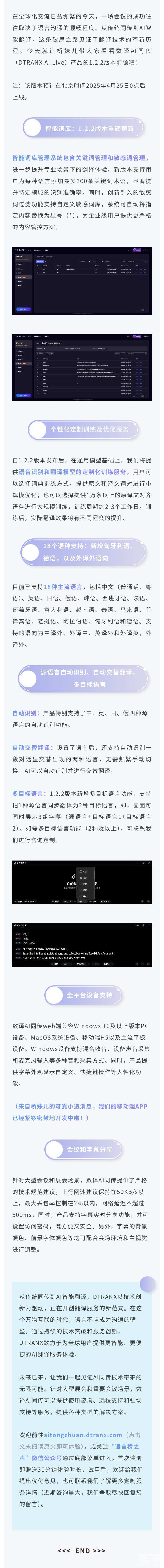 "更多活動(dòng)內(nèi)容請(qǐng)掃碼關(guān)注語言橋之聲公眾號(hào)相關(guān)推送 或直接復(fù)制鏈接地址: https://aitongchuan.dtranx.com 在瀏覽器中打開獲取"...[查看更多]