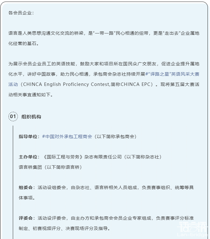 CHINCA EPC|關(guān)于舉辦第五屆“譯路之星”英語風(fēng)采大賽活動(dòng)的通知