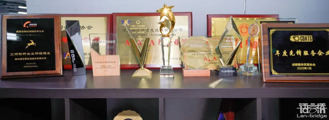 歷經(jīng)25年,語言橋獲得過多種獎項和榮譽,如中國十佳翻譯服務(wù)企業(yè)、中國翻譯服務(wù)行業(yè)5A級筆譯+口譯認(rèn)證企業(yè)、國家語言服務(wù)出口基地、國家高新技術(shù)企業(yè)、四川省技術(shù)中心等。同時,語言橋也獲得了多項國際標(biāo)準(zhǔn)化組織的認(rèn)證,如 ISO 9001質(zhì)量管理體系認(rèn)證、ISO 27001信息安全管理體系認(rèn)證、ISO 45001職業(yè)健康安全管理體系認(rèn)證等。