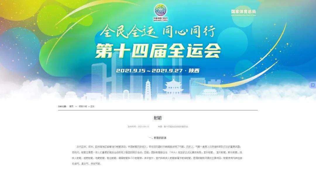 然后,筆者又去國家體總官網(wǎng)查詢,發(fā)現(xiàn)體總在其官網(wǎng)上這樣介紹射箭項(xiàng)目: