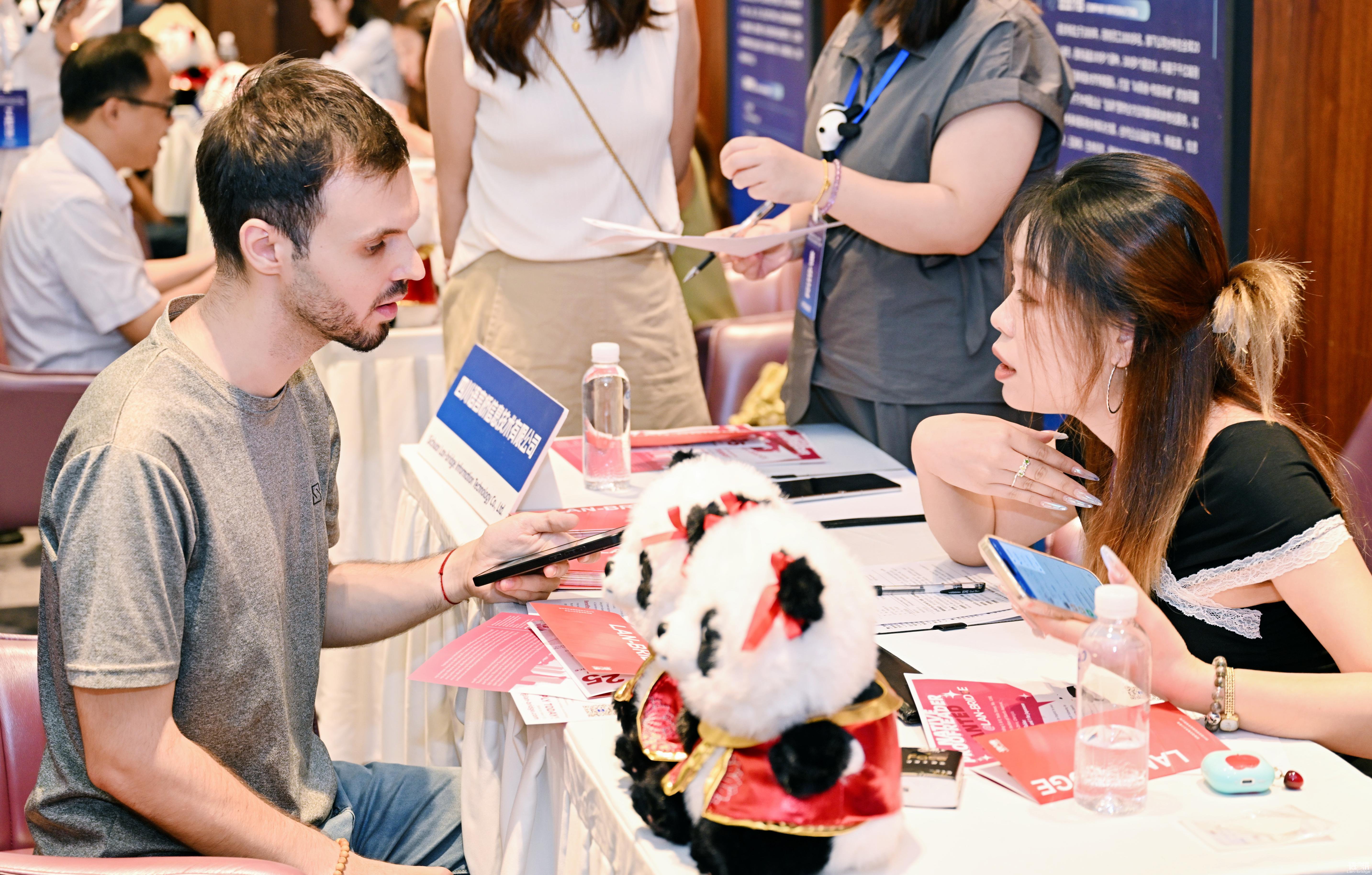 7月24日,2025成都天府軟件園國際人才招聘會在中國-歐洲中心圓滿舉辦。作為深耕語言服務(wù)與跨文化交流的領(lǐng)軍企業(yè),語言橋受邀參與本次招聘會,與20余家名企共同搭建國際人才對接平臺,重點(diǎn)關(guān)注海外人才職業(yè)發(fā)展需求,并通過自主研發(fā)的“數(shù)譯AI同傳”技術(shù)為招聘會提供實(shí)時語言支持,助力跨語言溝通無縫銜接。