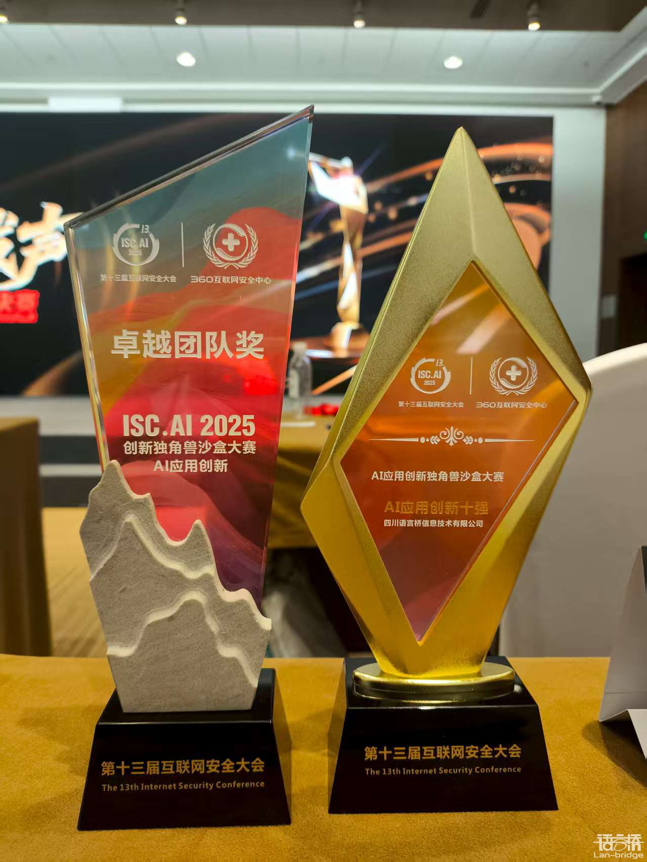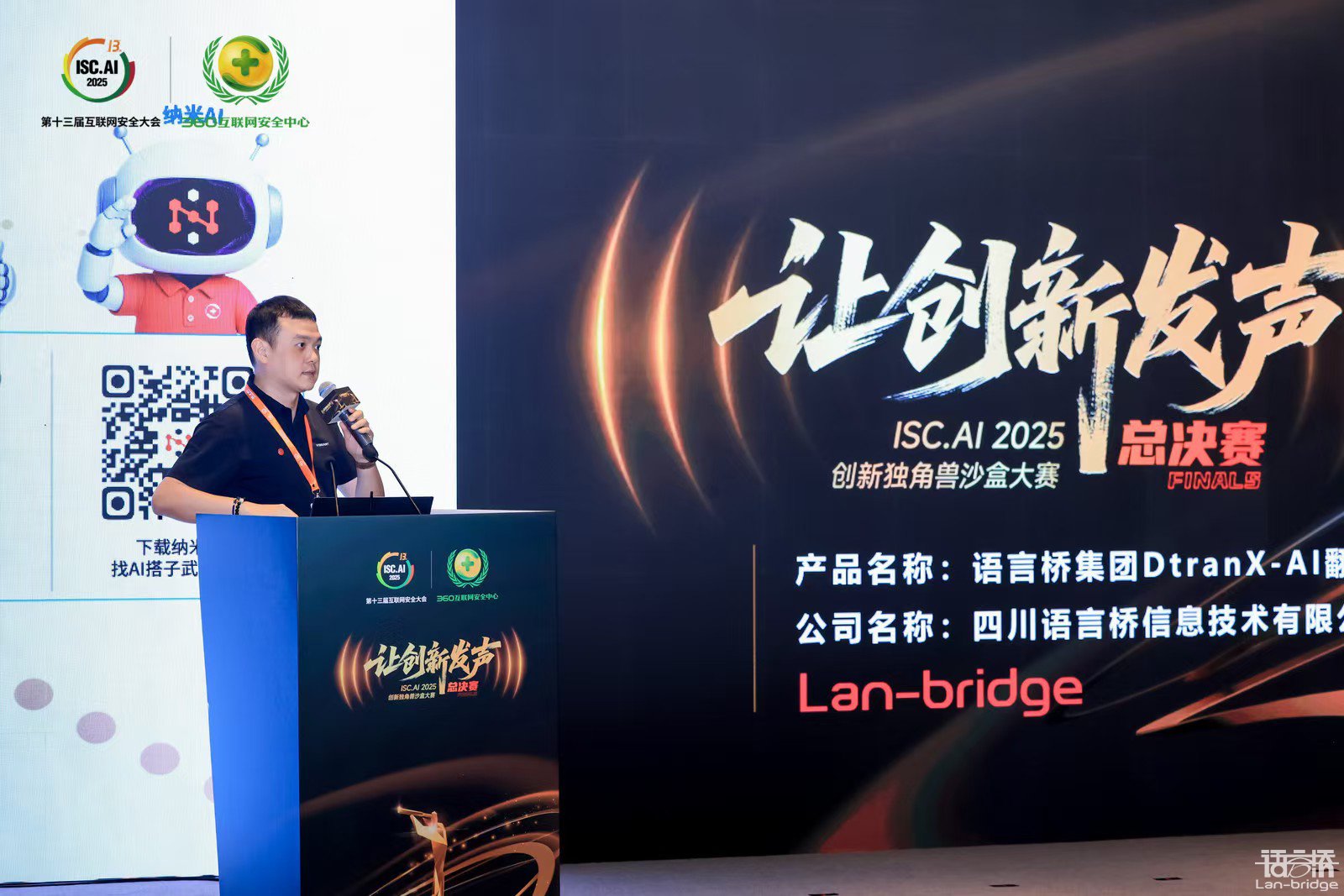 在2025年ISC.AI全球人工智能大會(huì)上,語言橋集團(tuán)憑借自主研發(fā)的DtranX-AI翻譯引擎,從數(shù)百個(gè)參賽項(xiàng)目中脫穎而出,成功入圍"AI應(yīng)用創(chuàng)新沙盒大賽"十強(qiáng),并榮獲組委會(huì)頒發(fā)的卓越團(tuán)隊(duì)獎(jiǎng)項(xiàng)。